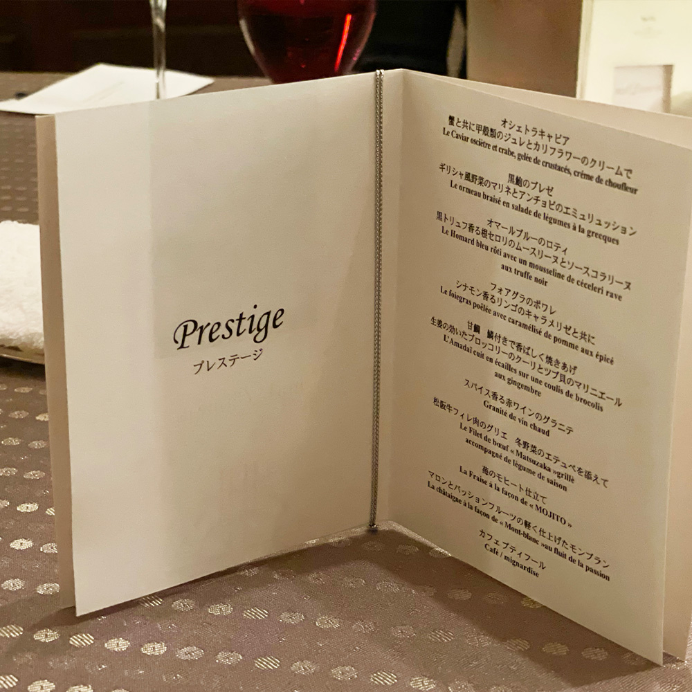 2021年1月、義理の両親に誘われて東京ベイコート倶楽部に宿泊する機会に恵まれた。ディナーはフランス料理のマル ダ ムールのコース プレステージ。